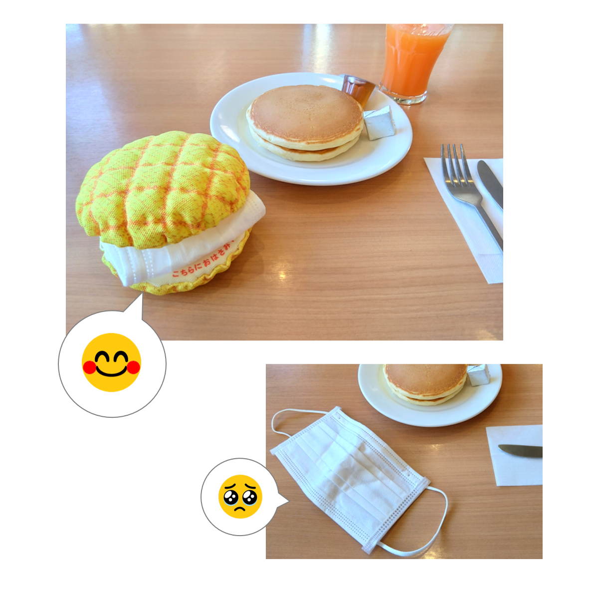If you have this melon bread type mask case, Chinese, Japanese, Western, etc... It blends in nicely with any table scenery without any discomfort.